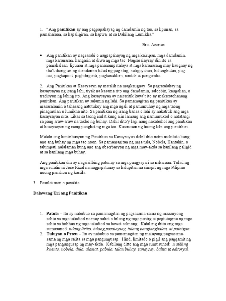 Panitikan Ang Kahulugan Uri Anyo At Mga Akda Nito