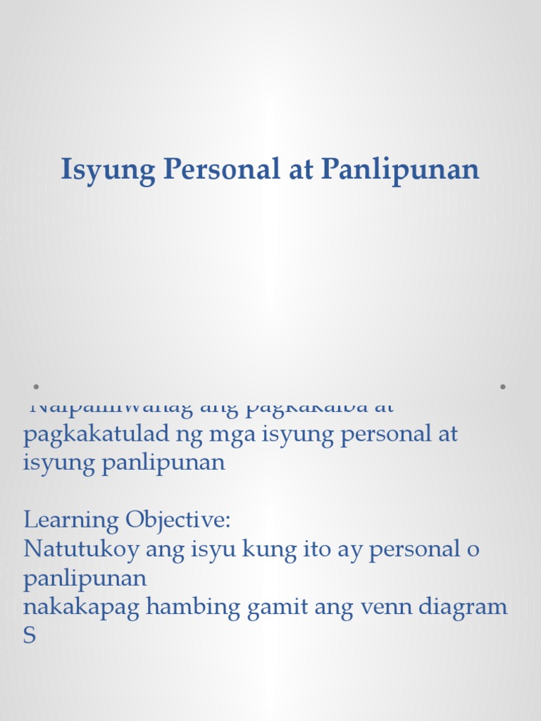 Ng kayamanan at karangyaan at ang Sikolohiyang Pilipino clipboards found for this slide ang at. Araling Panlipunan 10102020girly61. Gamit ang Venn diagram ay ibigay mo ang pagkakatulad atpagkakaiba ng isyung personal at isyung panlipunan.