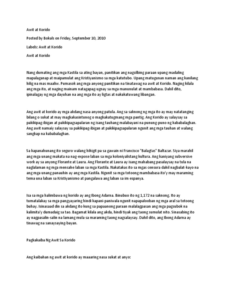 Hindi inaangkin ng mga tagapaglathala at mga may. Sep 10 2010 Ang kaibahan ng awit at korido ay maaaring nasa sukat at anyo. Ang isang panambitan ay matatawag natin na isang panalangin.