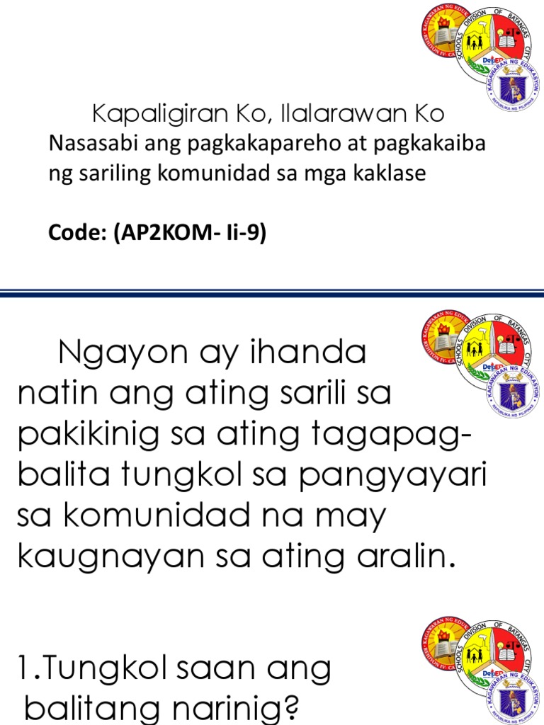 Download to read offline. Ang Aking Komunidad Noon at Ngayon.